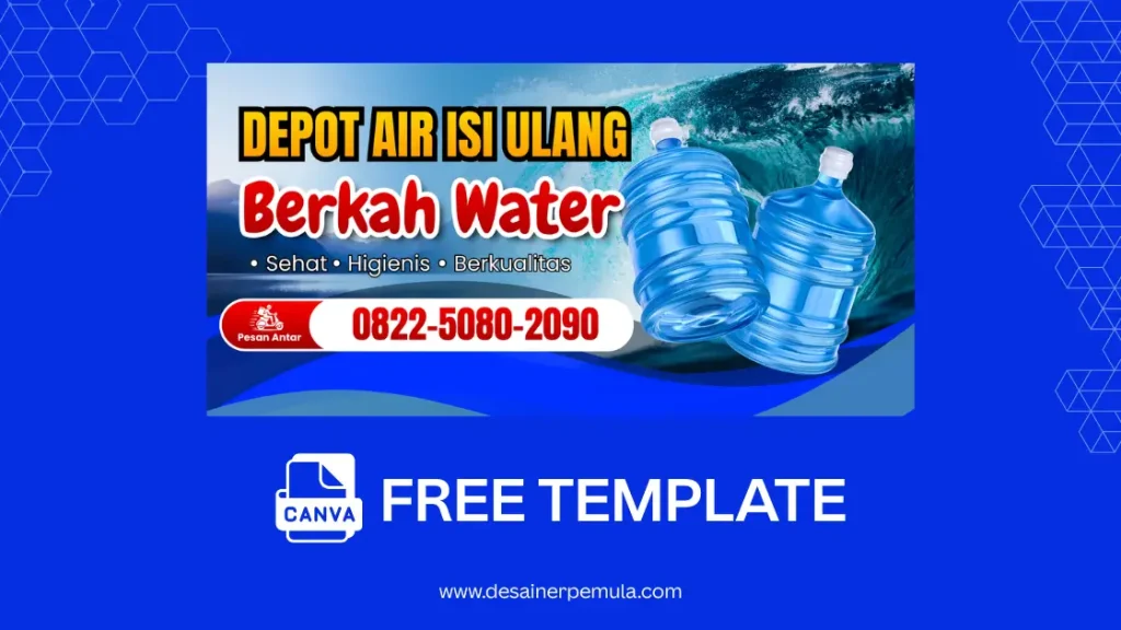 Dengan menggunakan template air minum isi ulang berbasis Canva, kamu bisa membuat desain spanduk yang rapi, bersih, dan profesional tanpa harus menguasai software desain rumit.